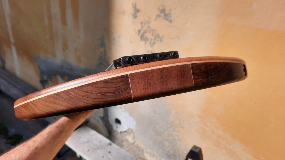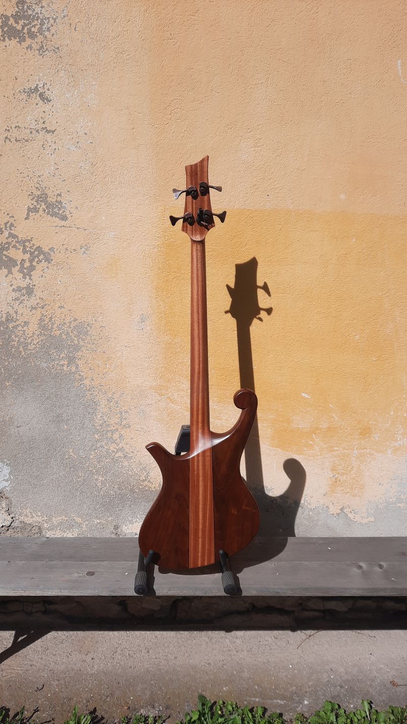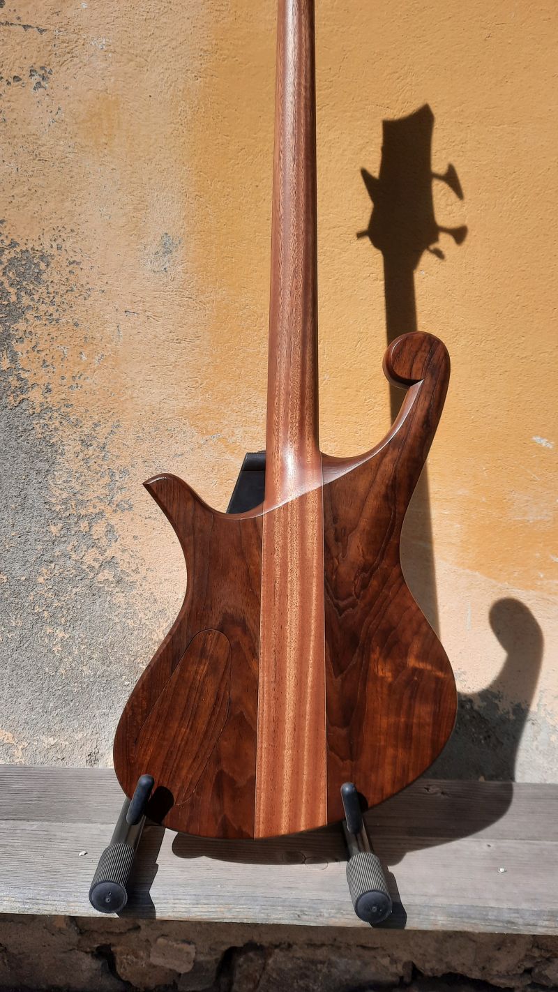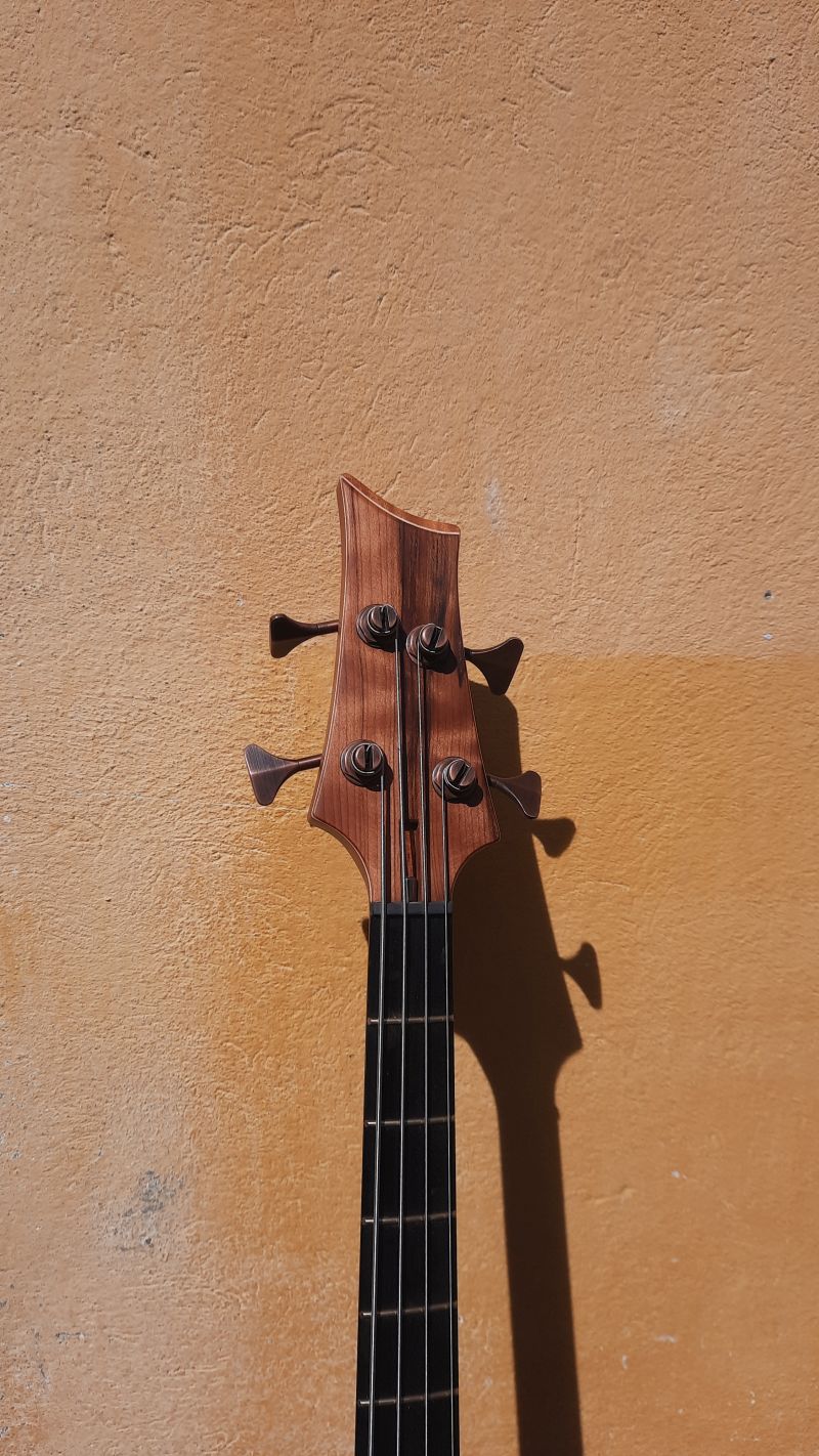/ 4 String Bass, E-Bass / Von fuzzo Scroll 4 string Custom Bass „Alex 4“ Doubleneck splitable Custombass „Lukas“ Akustik Bass „Bertha“ 4 Custom Bass „Corona 4“ 2018 E-Bass „Invader 4“ Custom electric Bass „Helium 4“ Corona Four 2010 Custom electric Bass „Pico“ Timi K Custom electric Bass The Scroll Bass Alex Mensur 34 Zoll, durch den Korpus gehender hals, 22 Bünde Specs Gewicht 3.5kg / 7.7lbs Elekronik Nordstrand dual coil Pickups Humbucker, splitbar zu parallel/singel/seriell jeweils, Noll 2 Band Elektronik, Volume – aktiv/passiv push/pull Poti, Balance Poti, Höhen- und Bassregler Material Thermo Sumpfeschen Korpus, geflammtes Rotholz – Redwood Decke mit Ahorn Furnieren, Kaya Mahagoni Hals, Ebenholz Griffbrett compound Radius ab 7,25 Zoll, Schaller 2000 vintage Copper Brücke, Hipshot vintage copper ultralight Mechaniken (Sonderanfertigung), De Tuner, PU matte Oberfläche, Karbonsattel